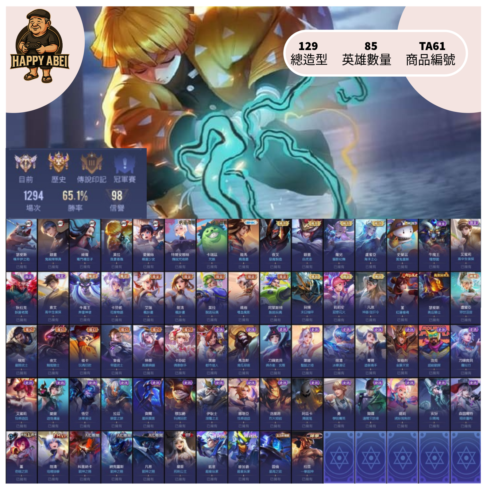 【編號TA61】月付1000元起 主打莫拉善逸 綺蘿禰豆子 夜叉惡魔製造 銀咒白虎志 等多直購傳說造型