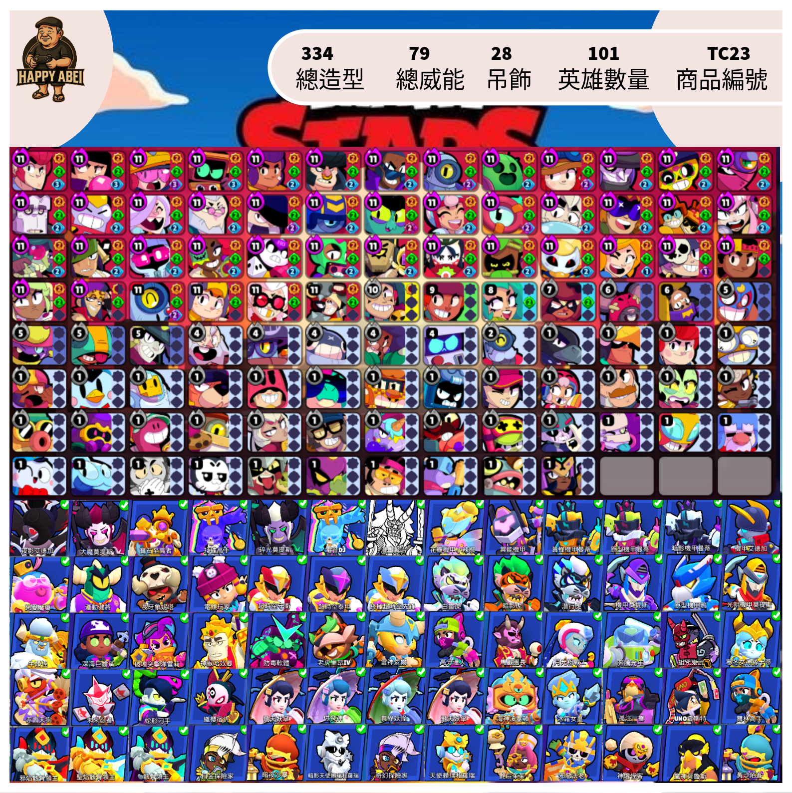 【編號TC23】月付400元起 101英雄 334造型 79威能 28吊飾 多PRO通行證造型